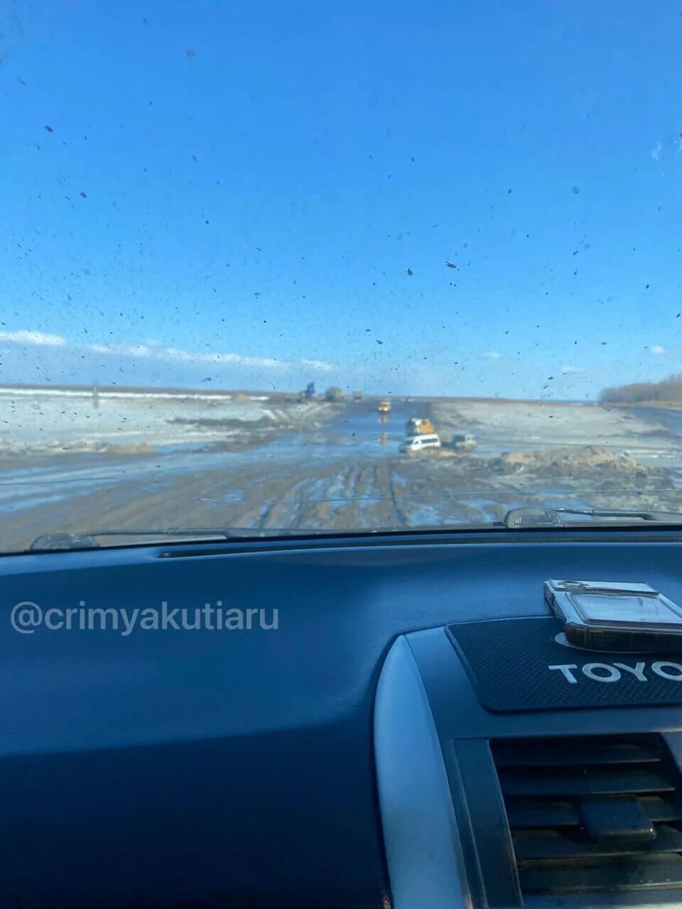 Состояние ледовой переправы Якутск — Нижний Бестях 11 апреля. Фото @crimyakutiaru