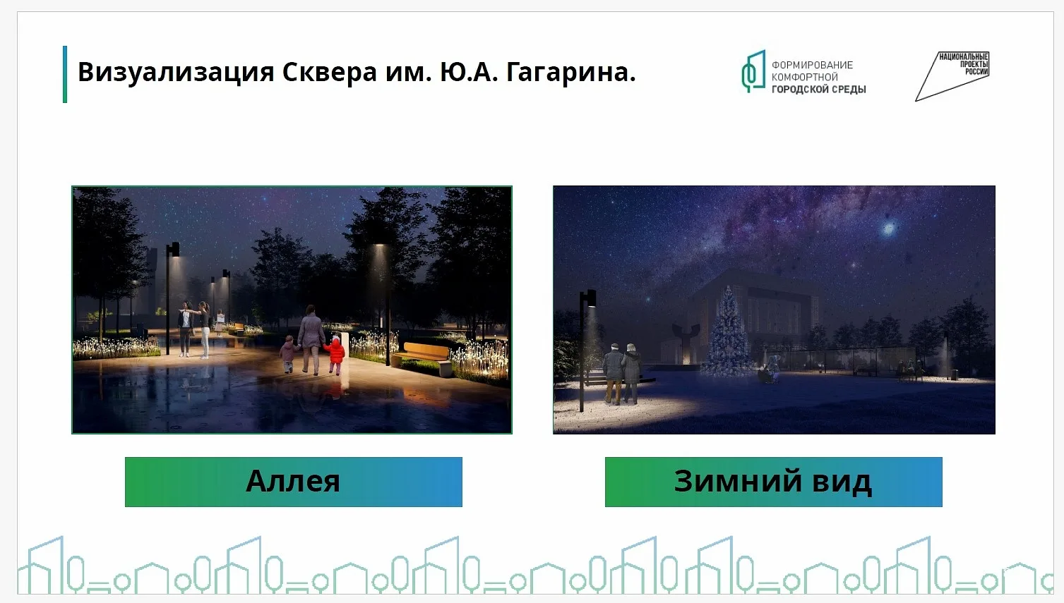 Символично, что в этом году мы проводим капитальный ремонт в сквере Ю.А. Гагарина: общественное пространство преобразится и станет привлекательным местом для семейного отдыха.