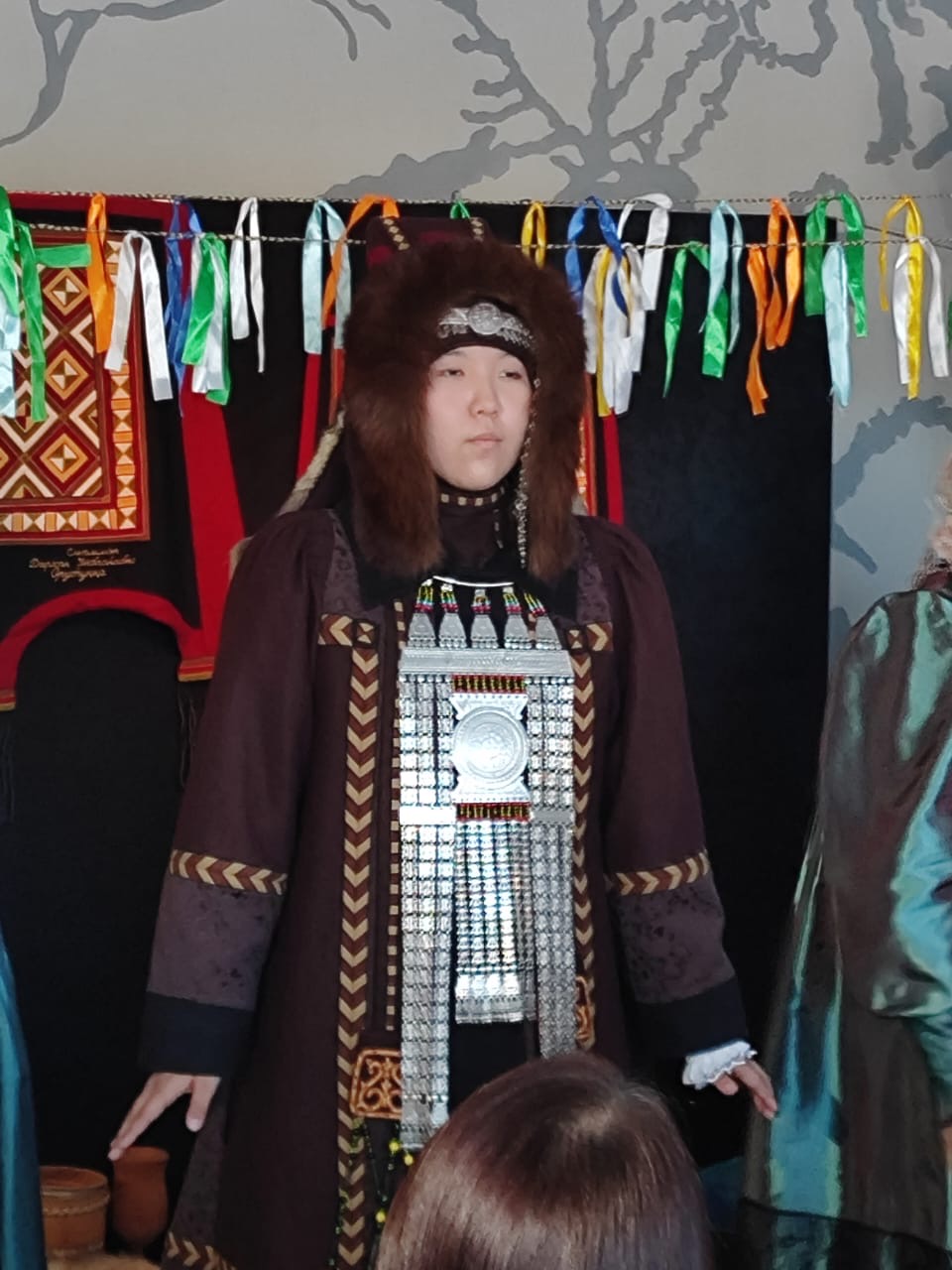 Основным действием представления стала церемония одевания якутской невесты. Костюмы мастера народных художественных промыслов Республики Саха (Якутия) Людмилы Римовны Семёновой прекрасно сочетались с обстановкой музейных экспонатов Института археологии и этнографии.