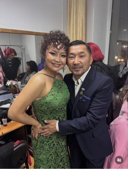 Звезда якутской эстрады ЭРХААН получил из рук министра культуры и духовного развития республики государственную награду – звание заслуженного артиста Республики Саха (Якутия). За кулисами его поздравляет звездная жена София АЙ.