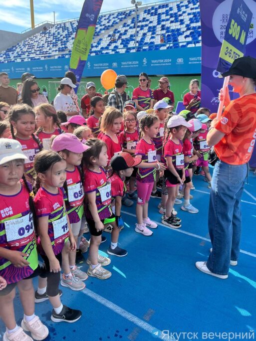 На стадионе «Туймаада» дети преодолевали свою дистанцию в полкилометра.