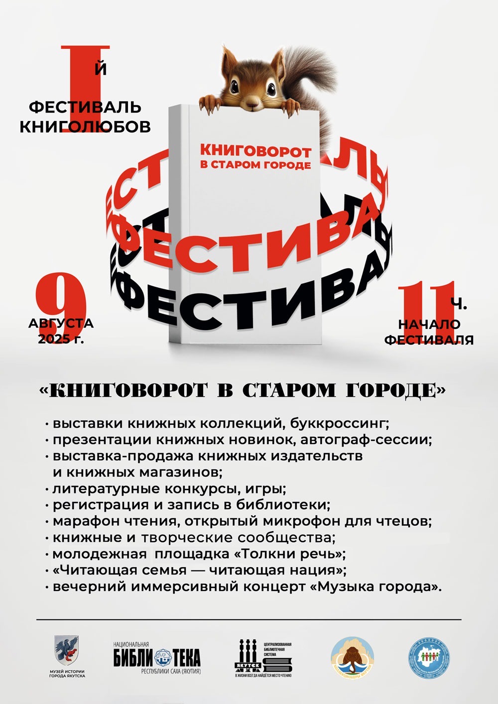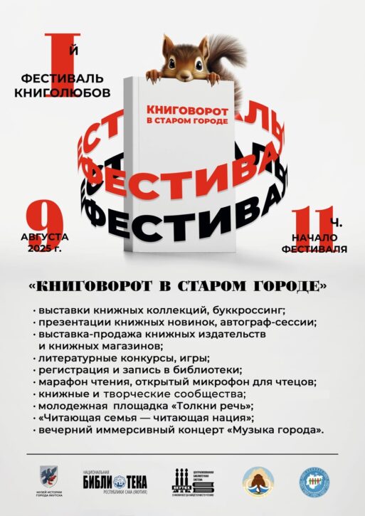 9 августа 2025 г. приглашаем всех ценителей книги принять участие в 1-м фестивале «КНИГОВОРОТ В СТАРОМ ГОРОДЕ». Проект — инициатива музея истории города Якутска и книголюбов г. Якутска