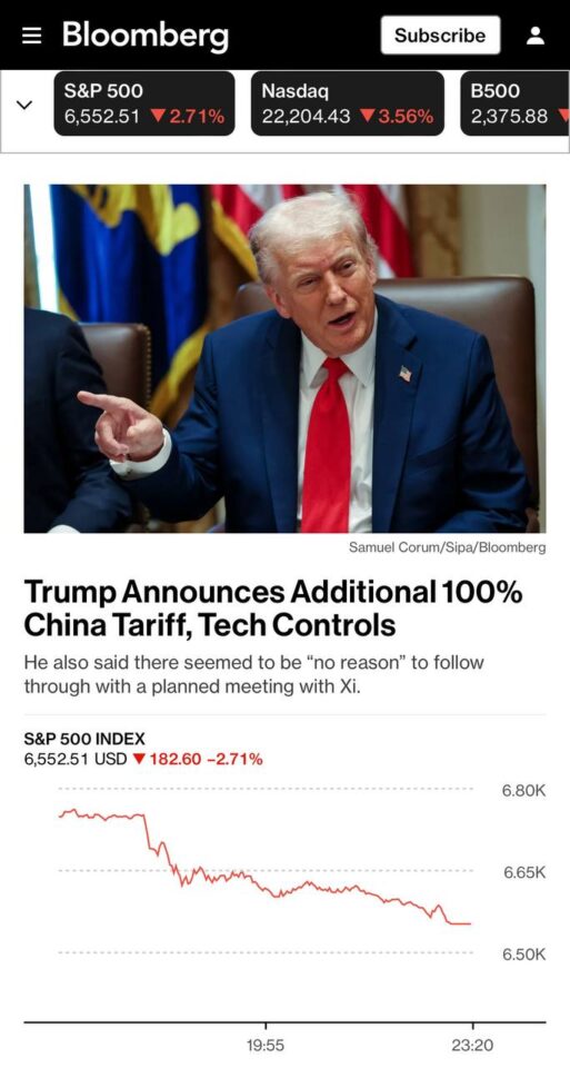 Красноречивая обложка Bloomberg: «Трамп пообещал Китаю 100-процентные тарифы» и все катится вниз.