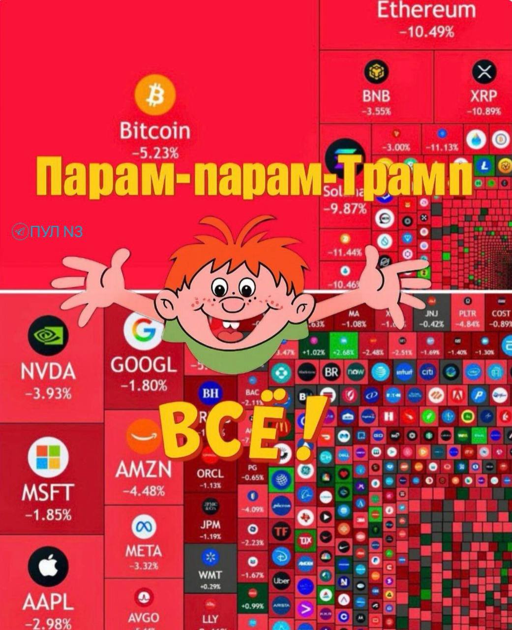 Многое решит предстоящая встреча Председателя Си и Трампа. Возможно столь жесткая сшибка ослабнет, лидеры договорятся. Но пока все очень серьезно. Взаимные санкции рушат технологические компании и крипту.