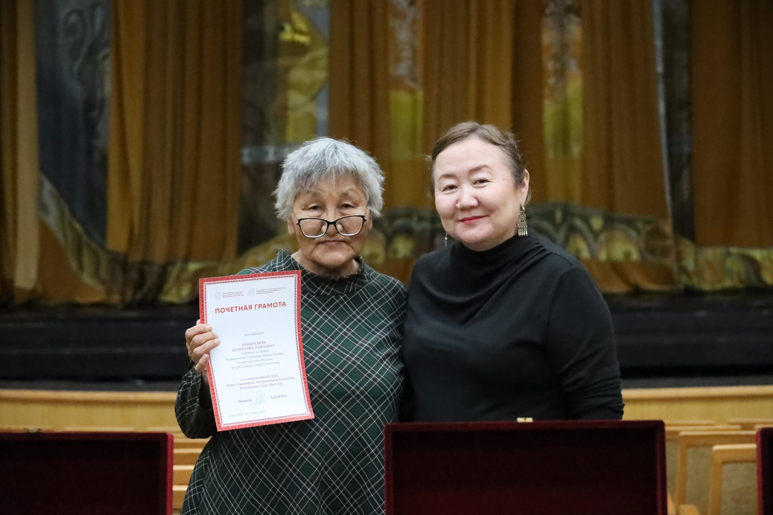 Благодарности Министра культуры и духовного развития РС(Я) удостоены художник-модельер театральных костюмов Прасковья Иванова, артистка оркестра Алина Леонтьева,