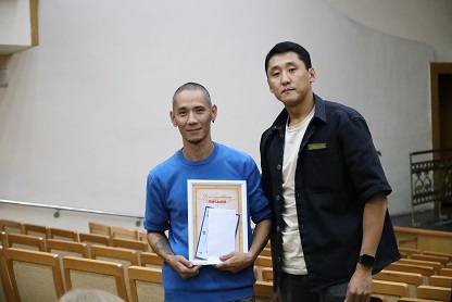 Благодарственные письма Рескома РС(Я), Профсоюза театра председатель профкома Ренат Хон вручил Людмиле Остапец и художнику-бутафору Николаю Никифорову.