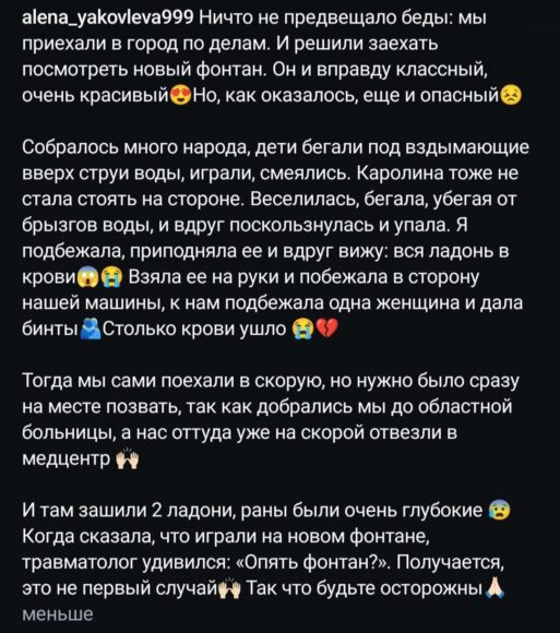 Еще один ребенок получил травму на площади Республики. Об этом сообщает подписчик тгк Пряная Якутия: «Ооо иэдээн ди, мы тоже поранились, нам поставили 5 швов на колено», — сообщает она.