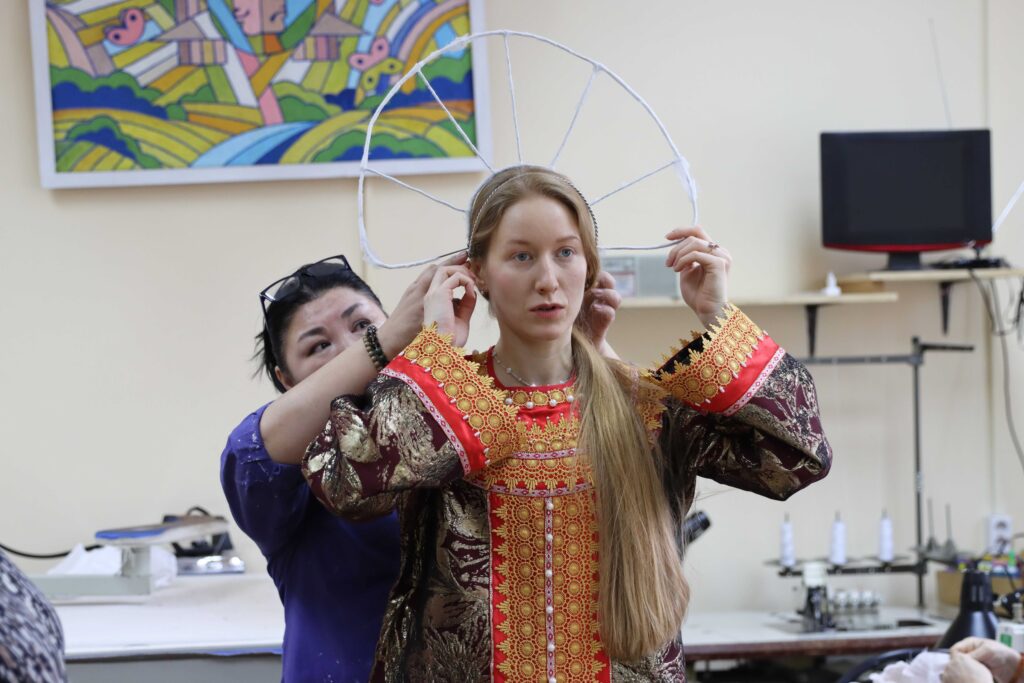 Художник спектакля — заслуженный работник культуры республики Марий Эл, заслуженный художник Республики Дагестан Борис Голодницкий создаст на сцене атмосферу добрых русских сказок с теремами, узорами и своего рода колесом судьбы. Большую работу проделала хореограф с невероятным стажем, опытнейший балетмейстер, педагог, профессор Ольга Козорез (г.Хабаровск), которая также работала с труппой впервые и создала более дюжины танцевальных номеров — практически половину спектакля. А вот преподавателем по вокалу выступила актриса Русского театра им. А.С. Пушкина Мария Ларина, которая также около месяца практически в ежедневном режиме работала с артистами над постановкой голоса и номерами.