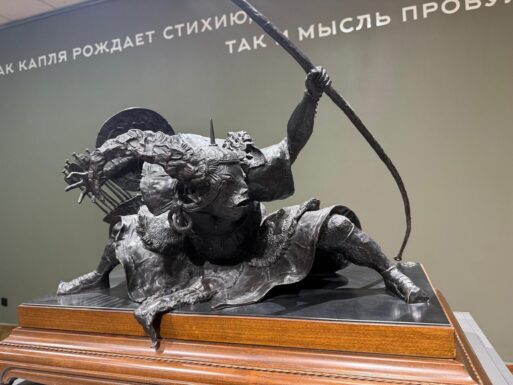 Хочу процитировать аннотацию, написанную под скульптурой «Полет»: «Конь под юным всадником уже готов устремиться ввысь — в небеса высокого вдохновения. Юный всадник в страхе приник к шее животного, предчувствуя и восторг, и неизбежность полета. Не так ли происходит с одаренными людьми, талант которых поднимает их над толпой».