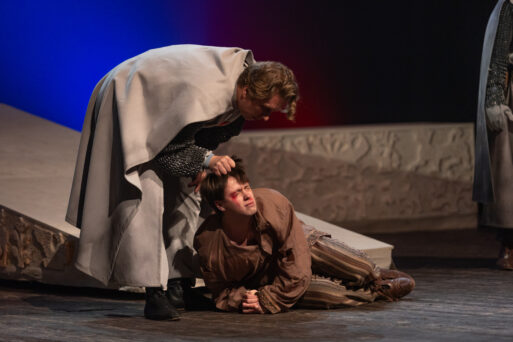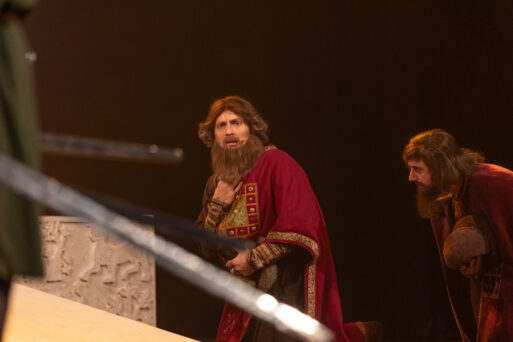 Состоялась в постановке и битва на Чудском озере, показанная, как рассказал летописец. Постановка боевых сцен заняла около месяца, почти ежедневно под руководством постановщика, директора – художественного руководителя театра Александра Лобанова, мужская часть труппы проходила репетиции боев, отрабатывая удары, выпады, защиту. Благодаря федеральному гранту АНО «Русский сезоны» и Минкультуры РФ, театр заметно пополнил фонд сценического оружия. Для воплощения сцены Ледового побоища, битвы монголов было закуплено несколько десятков единиц оружия средневекового образца: длинные мечи каролингского типа – вооружение русских, романские мечи и полутораметровые двуручные мечи с фальшгардой – оружие тевтонцев, изогнутые сабли – оружие монголов.
