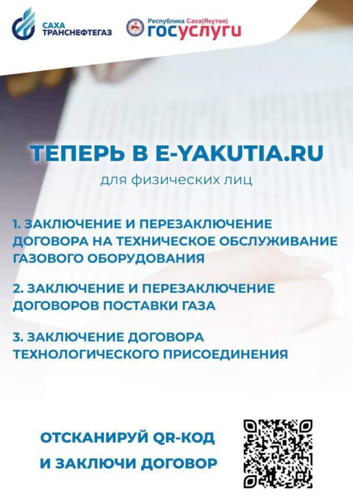 Национальная нефтегазовая компания «Сахатранснефтегаз» стремится повышать уровень оказания услуг для своих абонентов. Теперь самые востребованные услуги можно получить через Региональный портал государственных и муниципальных услуг e-yakutia.ru в электронном виде.