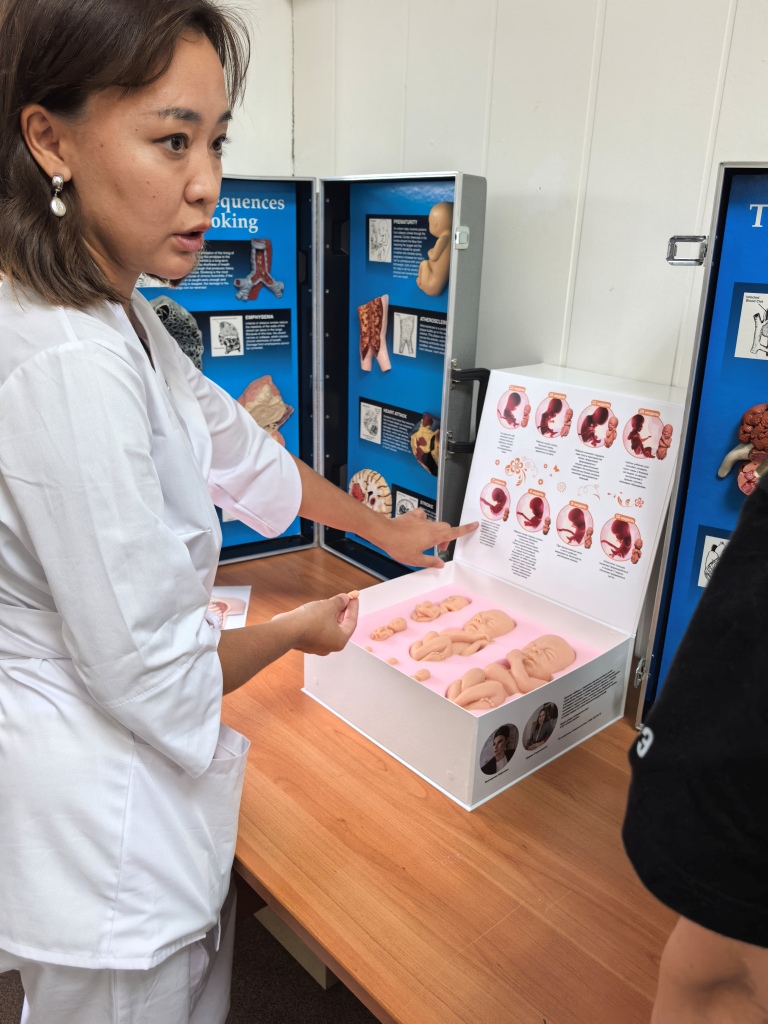 — Мы получили благотворительную помощь от АНО помощи беременным и нуждающимся семьям с детьми «Спаси жизнь», — рассказала Анна Константиновна. — Благотворительная организация (генеральный директор — Екатерина Александровна Маркова) безвозмездно, в рамках благотворительной деятельности, передала для нашего отделения набор «Жизнь человека до рождения», чтобы мы могли использовать его в работе с населением по пропаганде здорового образа жизни. В наборе  — внутриутробные дети от семи до двадцати шести недель развития. Наш отдел ведет работу с детьми и подростками по  профилактике зависимости от психоактивных веществ, и в частности мы работаем с детьми и подростками, родители которых стоят в нашем диспансере на учете как алко- и наркозависимые. Во время профилактических бесед мы рассказываем слушателям, как психоактивные вещества могут повлиять на развитие будущего ребенка. Благодаря подаренным нам муляжам наши пациенты и посетители музея поликлиники могут наглядно увидеть весь период развития плода в утробе матери, видеть, как плод развивается, какие изменения происходят с ним во внутриутробном состоянии. Куклы в наборе «Жизнь человека до рождения» силиконовые, объемные, их можно потрогать, там есть описание, как органы малыша понедельно развиваются. Данные муляжи мы можем использовать в работе не только с теми, кто планирует беременность и роды, но и с подростками, рассказывая о жизни будущего ребенка в первые девять месяцев.