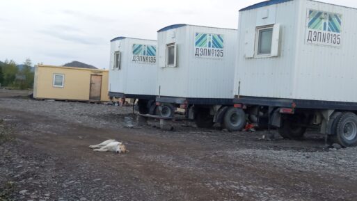 Но еще чуть проехали, и апокалипсис отступил. Вот он, сам вахтовый поселок – для 22 человек это дом на весь дорожностроительный сезон. Несколько балков, поменьше и побольше, некоторые совсем новенькие. Есть баня и кухня.