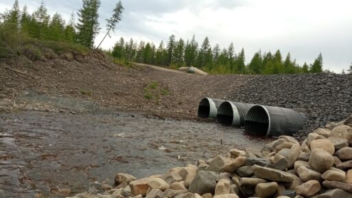 — Эта дорога зимой отрабатывает, когда уголь возят с Джебариков-Хая. Летом в основном такси на Томтор, большегрузов почти нет, — объясняет Артем Николаев. – Поэтому она и держится еще, а так ремонта здесь не было больше двадцати лет. Ну, трубы иногда ремонтировали. Здесь старые трубы были железобетонные и даже деревянные, еще сталинские.
