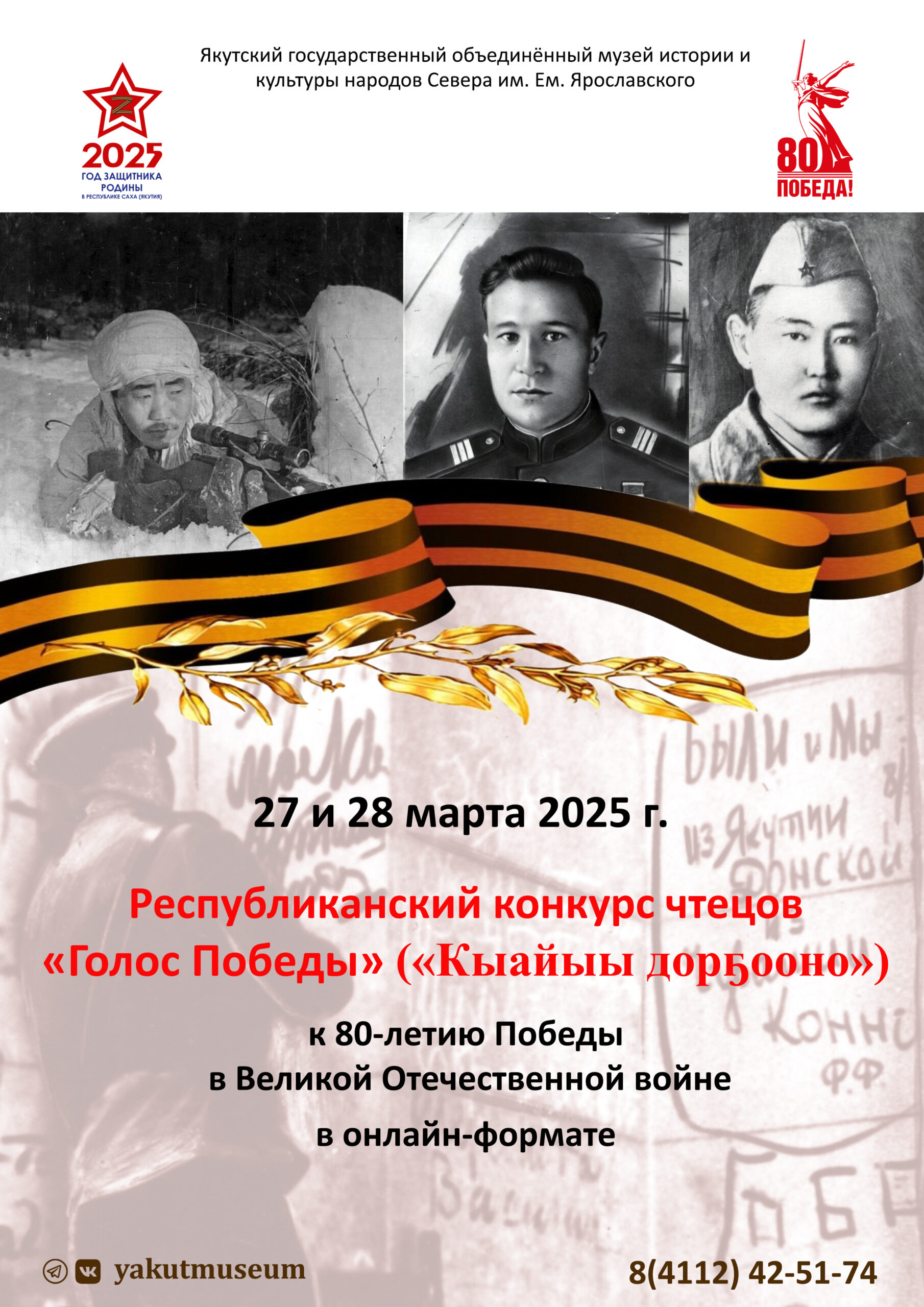 «Голос Победы» («Кыайыы дорҕооно»),посвященного 80-летию Победы в Великой Отечественной войне, Году Защитника Отечества в Российской Федерации и Году Защитника Родины в Республике Саха (Якутия)