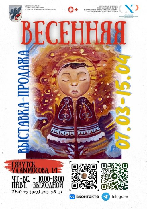 Оазисом весны стала выставка в музее истории Якутска. На небольшой камерной экспозиции в музее собраны произведения мастеров, членов Союза художников России: М. Старостина, Н. Федуловой, М. Гуляевой, А. Чикачева, Э. Степановой, Ф. Захарова, С. Колесова, А. Шадриной и др. Многие имена хорошо известны, но на выставке есть и молодые авторы. Здесь можно увидеть пейзажи, натюрморты, фигуративные композиции и абстрактные поиски. Графические работы дополняют авторские открытки. И. Корякин, И. Мекумянова, Г. Окоемова, М. Аргунова создали маленькие, но глубокие произведения, наполненные нежностью и чувственностью. Кроме того, на выставке представлены предметы декоративно-прикладного искусства: изящные колье и косоплетки, серьги, созданные вручную. Выставка «Весенняя» — это еще и возможность приобрести частичку весны — все работы авторы выставили на продажу.