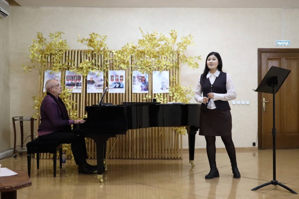 Мы его уже видели в этом камерном зале вместе с Глебом Перязевым, а теперь он снова прилетел в Якутск. Это замечательный пианист, постоянный концертмейстер Академии молодых оперных певцов Мариинского театра и многолетний концертмейстер народной артистки СССР Елены Образцовой, заслуженный артист Республики Северная Осетия–Алания.